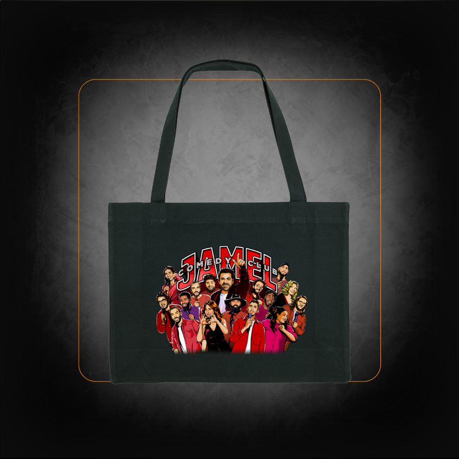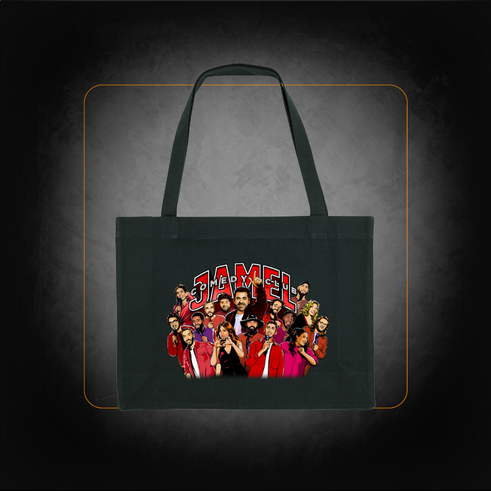 Son visuel captivant, imprimé en couleurs éclatantes sur la face avant, met en scène les membres emblématiques du Jamel Comedy Club dans un style artistique vibrant. L’anse longue garantit un port confortable, que ce soit à l’épaule ou à la main, idéal pour vos sorties ou vos courses quotidiennes.
