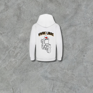 Affichez votre esprit libre avec le sweat à capuche blanc "Vivre Libre", une pièce incontournable de notre collection officielle dédiée à l’audace et à l’indépendance...